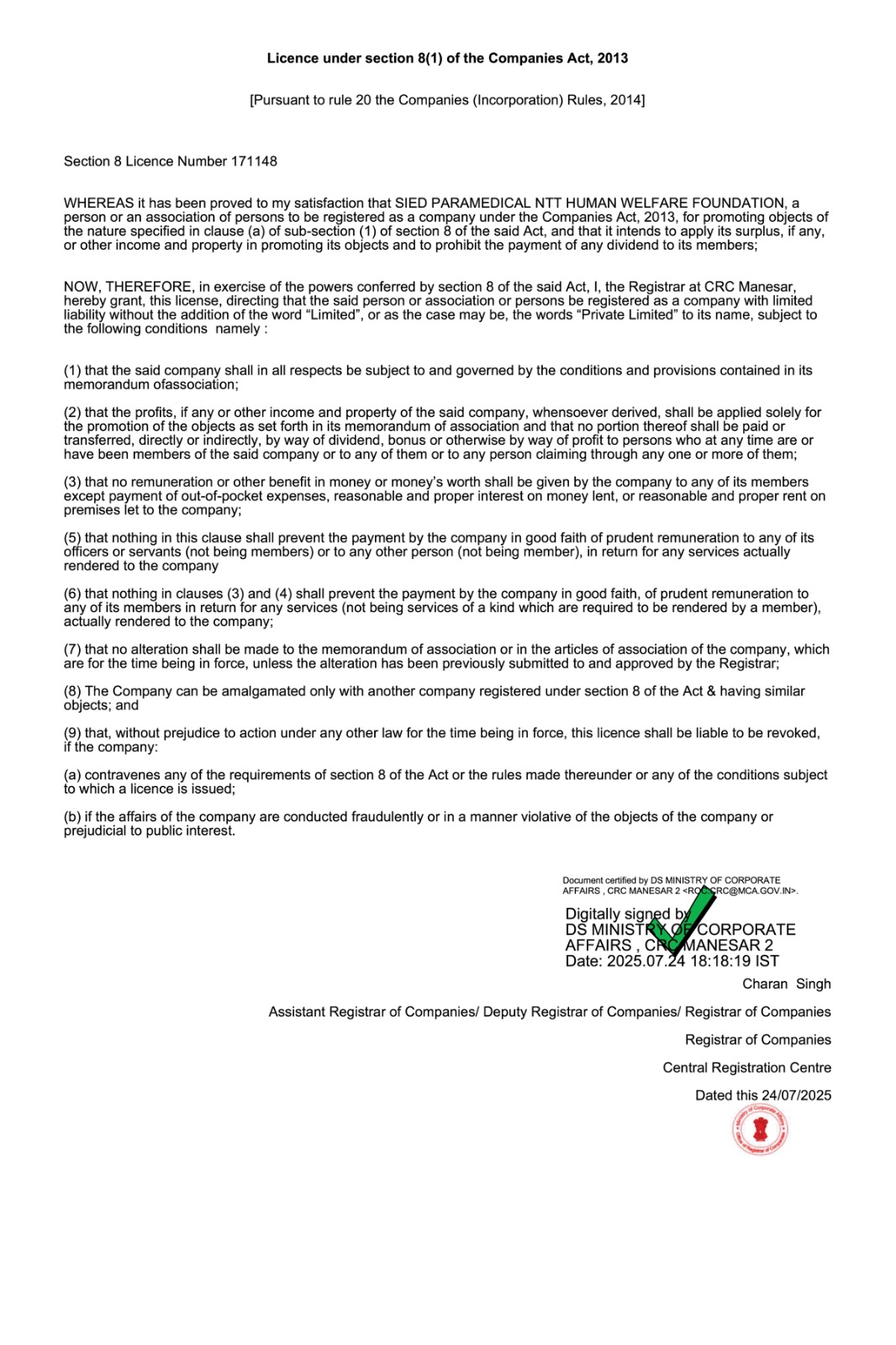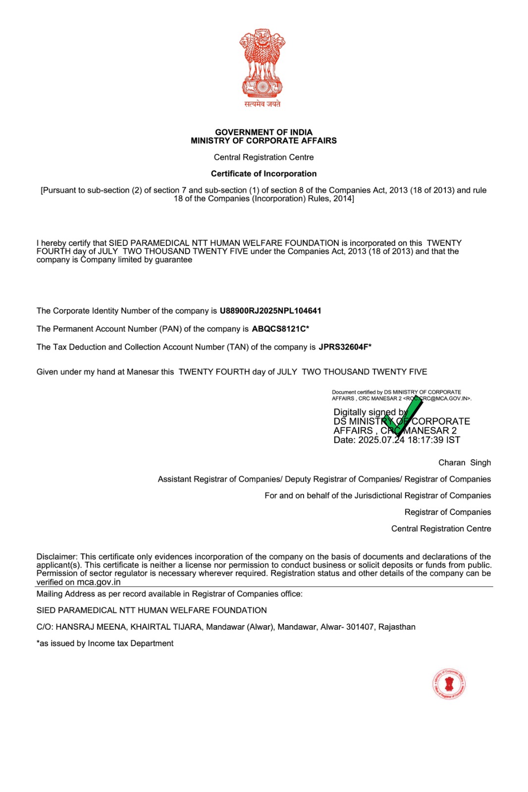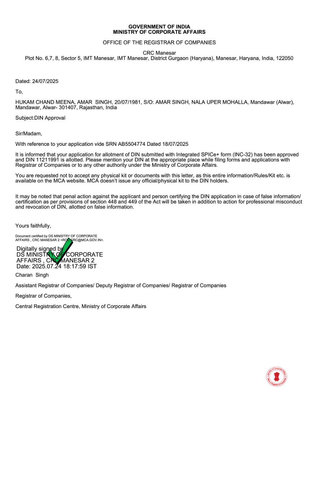 DARPAN Certificate