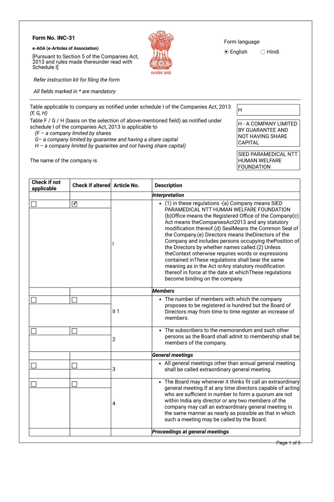 Articles of Association