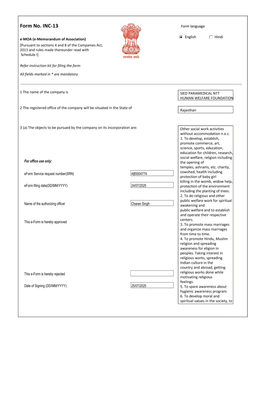 Ministry of Corporate Affairs